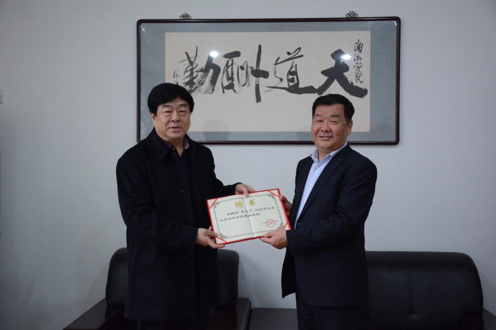 2018年3月26日,河北省书法家协会副主席陈茂才受聘太阳官网特聘教授仪式在行政楼二楼会客室举行。院长王化深,副院长、副书记张长铎,院长助理任福义会见陈茂才主席,并进行了热情而简短的交流。