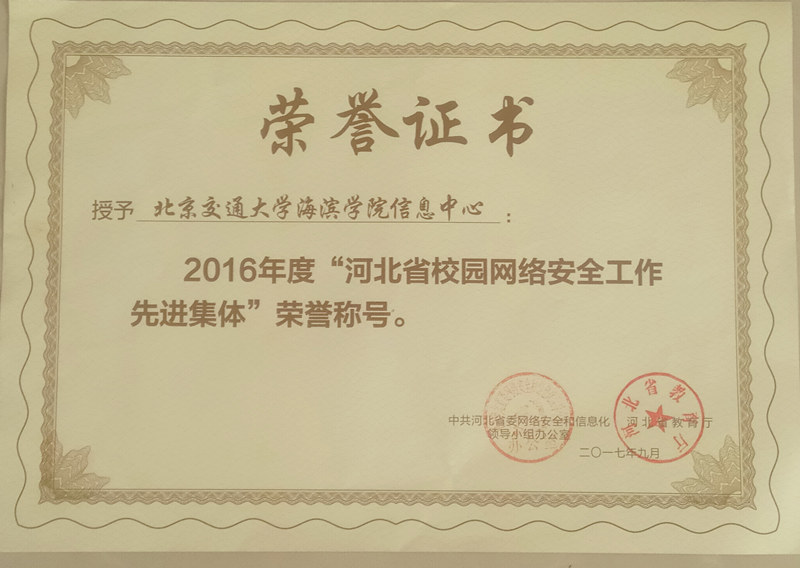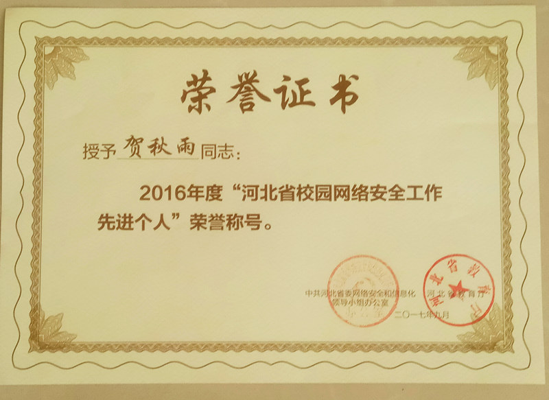 日前,在河北省网络安全和信息化领导小组办公室、河北省教育厅联合组织的河北省校园网络安全工作先进集体和先进个人的评选工作中,太阳官网信息中心被授予“河北省校园网络安全工作先进集体”荣誉称号,是省内唯一获奖的独立学院院校;同时,太阳官网信息中心贺秋雨老师荣获河北省校园网络安全先进个人荣誉称号,使太阳官网成为本次评选为数不多的同时获先进集体和先进个人荣誉称号的高校之一。