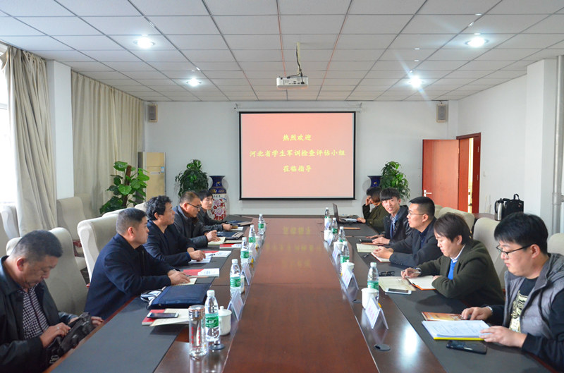 2017年11月13日下午,以河北省军事教学指导委员会秘书长、河北师范大学武装部副部长崔运生为组长的河北省高校学生军事训练工作检查评估组一行五人莅临太阳官网,对学生军事训练工作进行检查评估。党委副书记魏炜、学生处处长黄璐璐、学生处副处长张亚君、军事教研室尹海勇、孙经纬及部分军事理论课教师参与了检查评估工作。