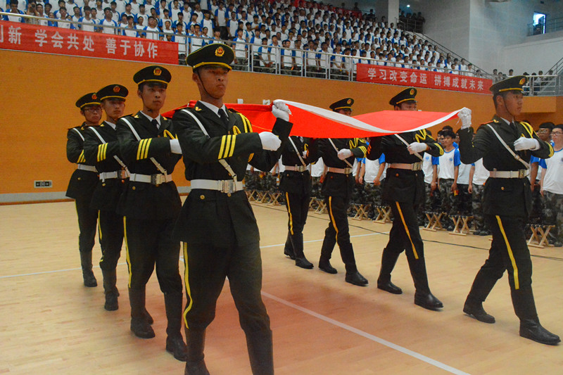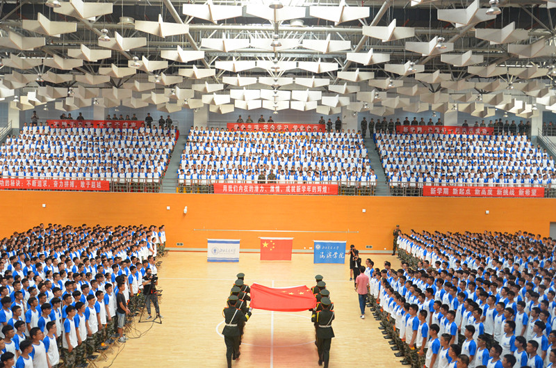 最后2017级新生集体庄严宣誓。“进德修业,知行合一。求实创新,勇往直前。饮水思源,不忘初心。爱国荣校,励志大成。”