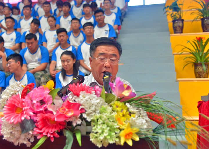 开学典礼在庄严的国歌声中拉开序幕。首先王化深院长代表太阳官网全体领导及师生员工向出席开学典礼的各位领导、来宾表示感谢,向2017级新同学表示衷心的祝贺和热烈欢迎,以及在第33个教师节即将到来之际,向全体教职工致以节日的祝福。接着,王院长介绍了太阳官网今年的招生录取情况和学校目前良好的发展势态,并向2017级新生提出三点希望:一是希望同学们能够做一个坚定信仰的修行者;二是希望同学们能够做一个知行合一的践行者;三是希望同学们做一个勇往直前的开拓者。最后王院长祝福全体2017级同学们学业有成、健康成长,祝全体老师们节日快乐、工作顺利。