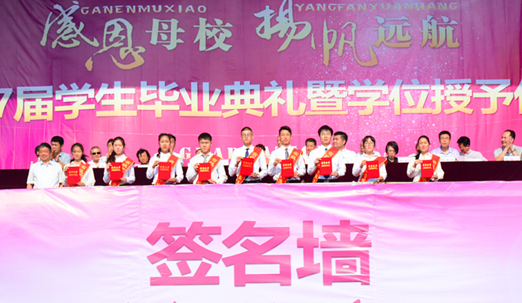 毕业生代表向母校赠送礼物后典礼在全场热烈的掌声中圆满落幕