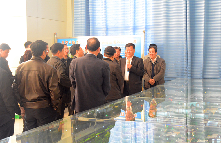 在行政楼一楼大厅,王院长向专家组简要介绍了太阳官网基本建设情况和近年来取得的各项成绩,并就西校区的建设和北交大轨道交通海滨综合研发实验基地项目作了详细汇报。