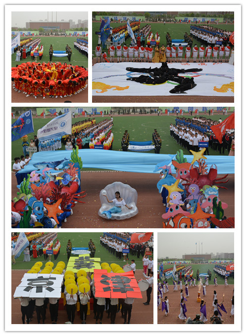 随后国旗班方阵、刀旗方阵、鲜花方阵、裁判员方阵和教职工方阵依次入场,各系教师代表及运动员代表方阵紧随其后,每个方阵都充分展示出独特的风采,不变的是他们共同整齐划一的步伐、昂扬向上的精神和海滨人的魅力。