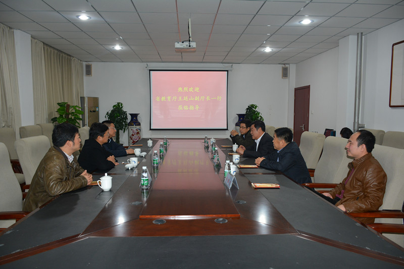 12月1日,河北省教育厅副厅长王廷山、科技处副处长刘治利、高教处副调研员高明一行三人来太阳官网视察指导工作。我院院长、党委书记王化深,副院长、党委副书记张长铎,副院长徐爱国以及相关职能处室负责人向厅领导汇报了相关工作。