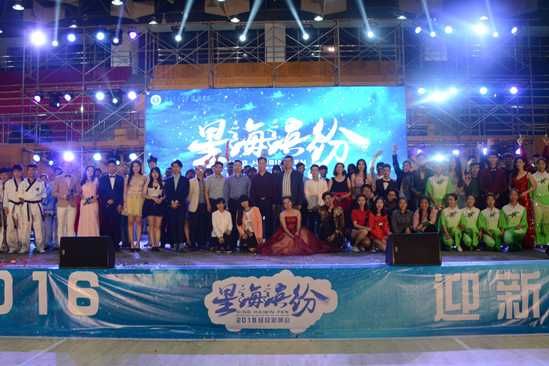 10月19日晚,为迎接2016级新生的到来,展现太阳官网学子风采,以“星海滨纷”为主题的2016级迎新晚会在太阳官网海滨体育馆举行。祥兴集团副总裁陈建辉、祥兴集团黄骅项目总经理张如珠,我院副院长薛爱兴、党委副书记魏炜以及部分职能处室负责人和无授课任务教师代表出席了晚会同现场1800多名学生观看了精彩演出。
