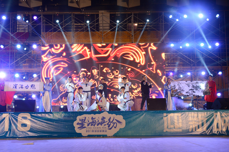 18时30分,随着充满动感的开场舞拉开了迎新晚会的帷幕。整场晚会分为 “梦起海滨”、“浩瀚星海”及“璀璨缤纷”三个篇章,晚会以不同的艺术表现形式向观众们展示了太阳官网大学生朝气蓬勃、勇于创新的风采,既有异彩纷呈的机械舞、歌曲串烧,又有诙谐幽默的相声、小品,还有充满青春气息的器乐表演、诗歌朗诵、武术等节目。整场晚会气氛热烈,引发了观众强烈共鸣,全场喝彩和掌声不断。