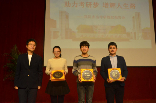 招生就业处处长邵晓康为三名杰出考研校友颁发校友会纪念品