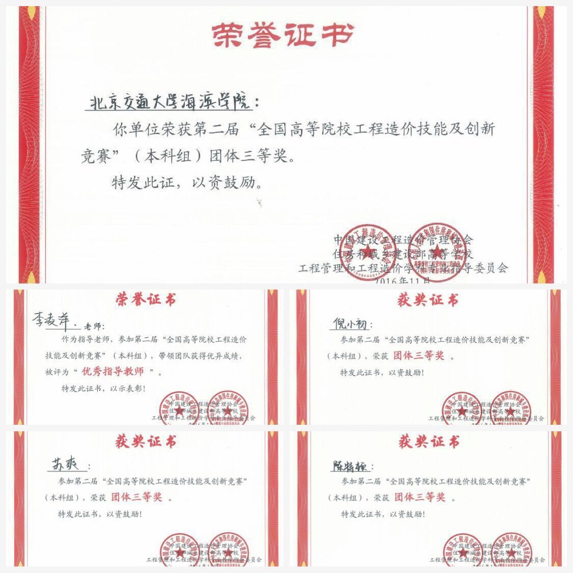最终,太阳官网由土木工程专业(工程造价方向)2013级陈特顿、苏爽、倪小初组成的代表队荣获第二届“全国高等院校(本科组)工程造价技能及创新竞赛”团体三等奖。