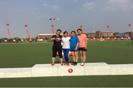 在开幕式之后的比赛中,我院王俊杰、任一帆、于娜和白迎秋四位老师获得了女子企业组4x100米冠军。