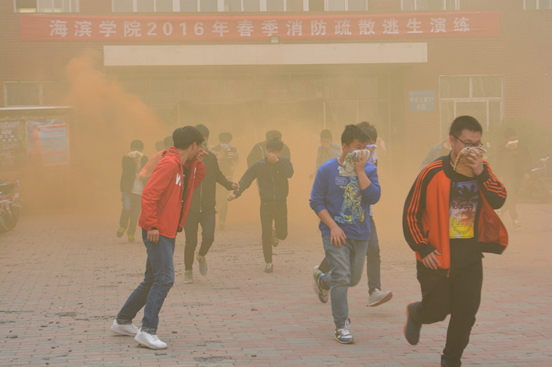 为进一步加强学院消防安全工作,提高相关部门面对突发事件的应急处置和协调配合能力,增强学生消防安全意识,2016年4月13日下午,我院在1号公寓楼举行了学生公寓消防逃生演练,2015级近3100名同学参与了此次消防逃生演练。北京交通大学校长助理吴强,我院院长、党委书记王化深,副院长薛爱兴,党委副书记孙文博,北京交通大学保卫处副处长黄宏,黄骅市消防大队教导员彭涛及我院相关职能处室负责人、各系团委书记及辅导员老师出席了演练活动。