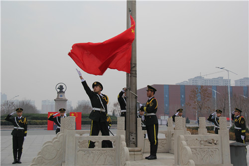 上午8:00,纪念“一二·九”学生爱国运动80周年升旗仪式在图书馆前中心广场举行。我院副院长、副书记张长铎、副院长薛爱兴、副书记孙文博、学生处副处长黄璐璐及各系团委书记和辅导员老师出席仪式。各系辅导员及学生代表参加升旗仪式。