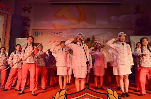 红歌会在我院大学生艺术团慷慨激昂的合唱《东方红》和《抗日军政大学军歌》中徐徐拉开帷幕。