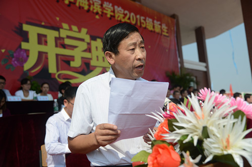 郑增强副市长代表黄骅市委市政府致辞,他向我院2015级新生简要介绍了黄骅市的区位优势、发展前景以及教育事业发展情况。他指出,黄骅市委市政府将继续关心和支持学院的建设与发展,提高服务质量,营造良好发展环境。