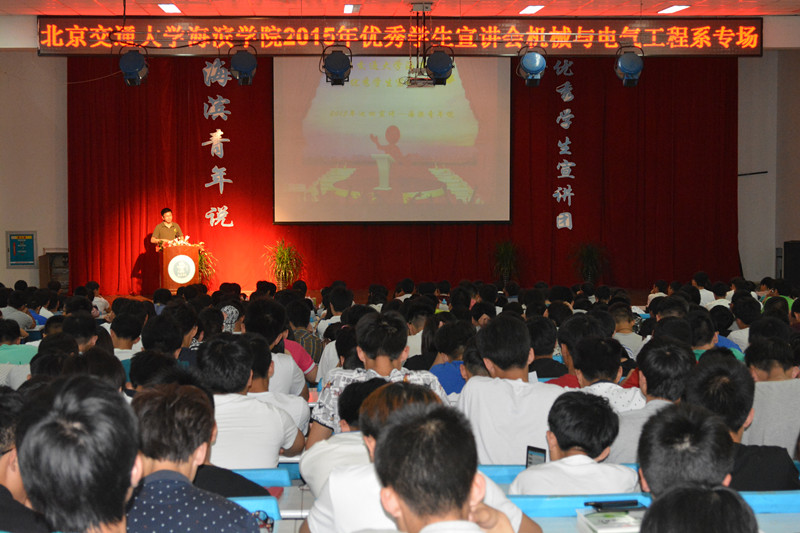 宣讲会上,党委副书记孙文博发表讲话,他指出,海滨学子要充分利用与北京交通大学相互联系的便利条件,努力学习,踏实做人。之后,五名优秀学生代表分别就自己的亲身体验与到场的学弟、学妹们分享了心得。
