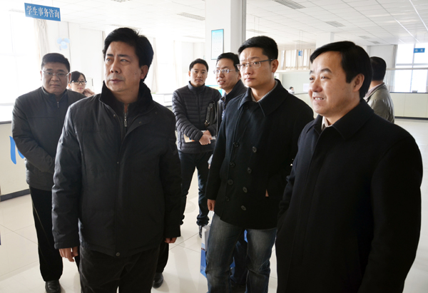 座谈会结束后,在我院领导的陪同下,张中兴副校长一行实地走访了我院行政楼大厅一卡通服务中心、图书馆、二期学生公寓、海滨餐厅,对校园一卡通系统相关配套服务设施进行了全面考察。