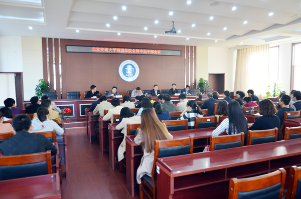 首先,北京交通大学党委副书记、我院院长高福廷宣布了学院领导班子调整决定:贾怀义同志因年龄原因不再继续担任副院长领导职务,任命徐爱国同志为副院长,分管我院招生就业工作。接着,贾怀义同志在会上发言,对来院工作六年多来的总体情况进行了简要回顾,向学院董事会、学院领导班子及全体师生员工的信任、支持和帮助表示衷心感谢,并表示将尽自己所能为学院发展贡献力量。随后,徐爱国副院长作了表态发言,表示将努力工作、开拓进取,力争使我院招生就业工作再上一个新台阶。