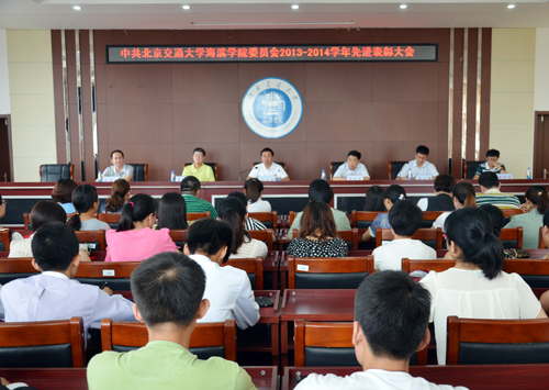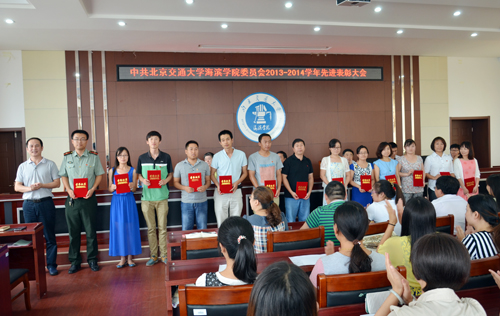 7月5日下午2:30,中共北京交通大学海滨学院委员会2013-2014学年先进表彰大会在行政楼五楼A区会议室召开。我院在院党委委员出席会议并在主席台就坐。全体教工党员及部分学生党员参加会议。会议由我院党委副书记孙文博主持。