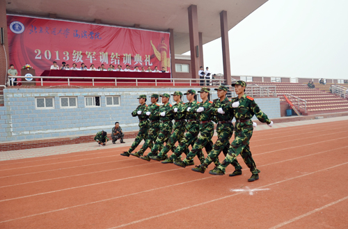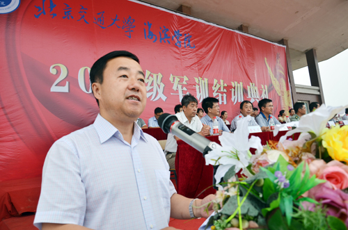 7月12日上午7:00,我院2013级军训结训典礼在学院体育场隆重举行。北京交通大学党委副书记、我院院长高福廷,黄骅市委常委、武装部部长庞玉发,中国人民解放军驻北京交通大学选培办干事、我院2013级军训团团长倪立萍,我院执行院长王大勇,副院长、副书记张长铎,副院长贾怀义,副书记孙文博以及相关职能处室负责人、系主任、团总支书记出席典礼。2013级军训团全体同学参加典礼。结训典礼由团委书记黄璐璐主持。