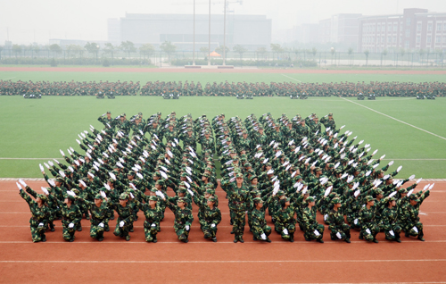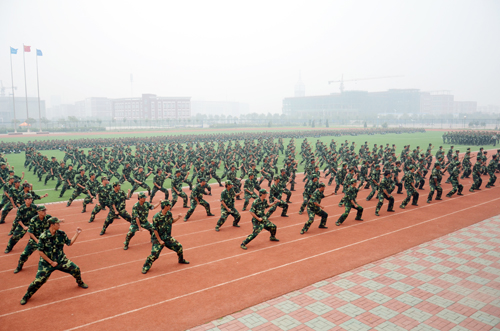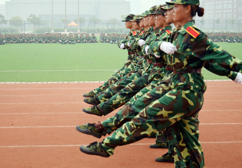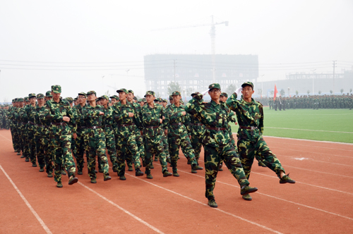 2013级军训团整队完毕之后,高福廷院长宣布阅兵式正式开始。在倪立萍团长的陪同下,高福廷院长对军训团进行了检阅。接着,举行分列式表演,各方阵喊着嘹亮的口号,迈着整齐的步伐,依次通过主席台。随后,进行军事科目汇报表演,包括队列班表演、军体拳表演、军歌方阵表演等,精彩的表演赢得了在场观众的阵阵掌声。