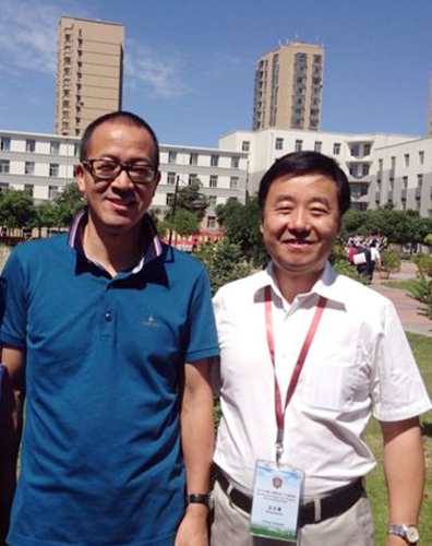 (王大勇执行院长与北京工业大学耿丹学院理事长、新东方教育科技集团董事长兼总裁俞敏洪合影)