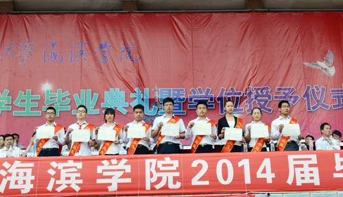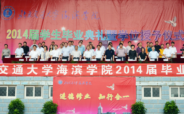 毕业典礼在全体师生热烈的掌声中圆满落幕。北京交通大学海滨学院2014届毕业生带着母校师生的深深祝福踏上了人生新征程。