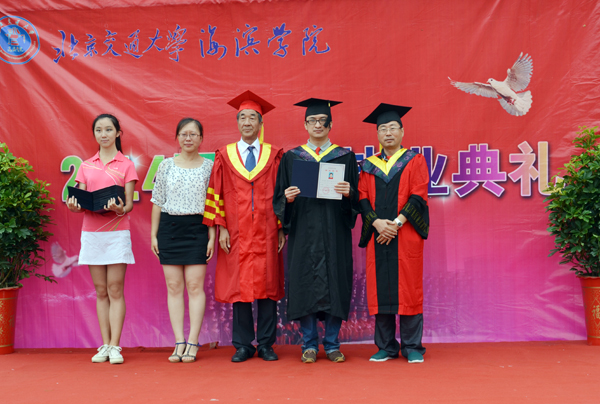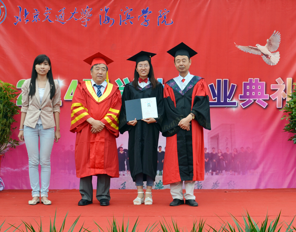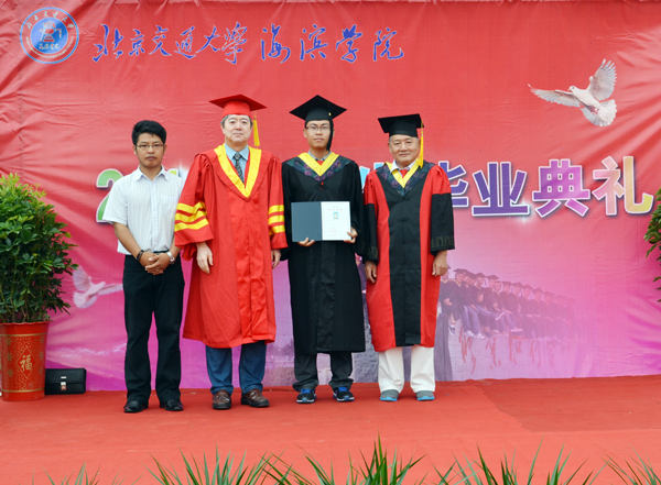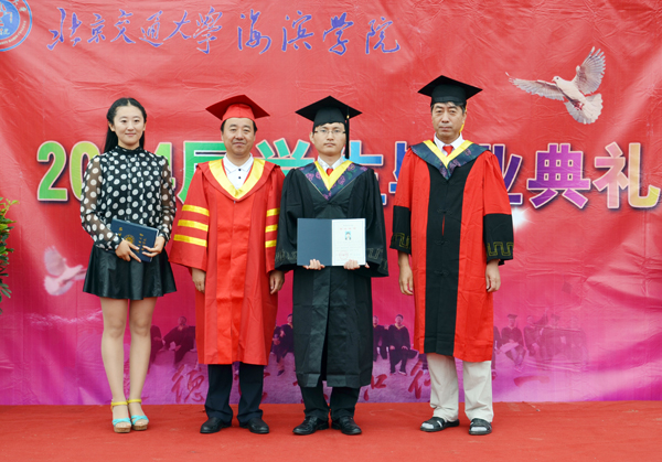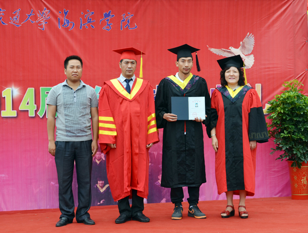 6月21日上午,我院2014届毕业典礼在完成领导讲话、师生及家长代表发言和颁奖环节之后,在各专业负责人及毕业生辅导员的陪同下,院领导分专业为毕业生一一颁发毕业证书,亲切握手、正冠拨苏并合影留念。