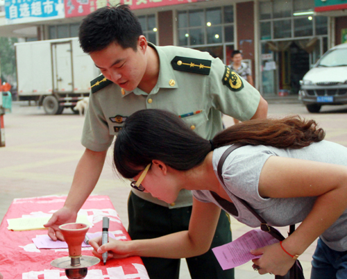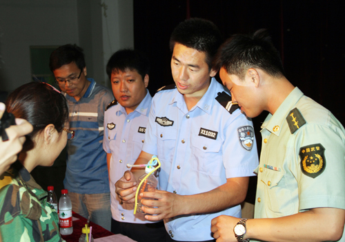 上午11:00,在我院保卫处的协助下,黄骅边防大队官兵和黄骅公安局禁毒中队民警又来到学生一期餐厅门口,向我院同学进行禁毒宣讲、实物展示,并组织学生现场签名。