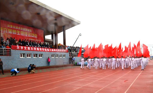 5月11日下午2:00,以“运动海滨·活力青春”为主题的北京交通大学海滨学院第六届田径运动会隆重开幕。政府领导:黄骅市政府副市长郑增强,市文广新局局长王文博;院领导:北京交通大学党委副书记、我院院长高福廷,执行院长王大勇,副院长张长铎、贾怀义、徐维祥、薛爱兴,副书记孙文博;投资方嘉宾:黄骅华城房地产开发有限公司总经理张如珠出席开幕式并在主席台就坐。开幕式由徐维祥副院长主持。