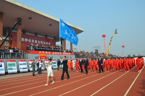 10月18日上午8:00,以“全民参与、全民共享、幸福全民”为主题的黄骅市首届全民运动会开幕式在我院运动场隆重举行。黄骅市委副书记、市政府市长潘海瀛,黄骅市委副书记董文昌等四套班子领导以及沧州市体育局局长马英利等出席开幕式。我院执行院长王大勇应邀出席开幕式并在主席台就坐。黄骅市社会各界近3000人现场观看开幕式。开幕式由黄骅市政府副市长郑增强主持。