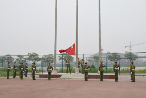 最后,王大勇执行院长为2012级军训团授旗,北京交通大学国防生刘凯文代表军训团接旗。典礼在热烈掌声中圆满结束。