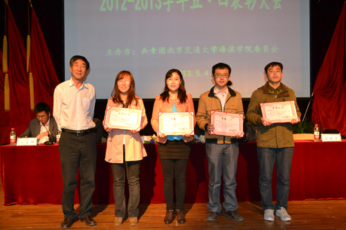 表彰大会上,副书记兼副院长张长铎宣读了五四表彰决定:土木工程系1107班、1109班,化学工程系1001班等10个班级团支部获得“五四红旗团支部”荣誉称号;经济管理系工程管理1204班李梦乐等274名同学获得“优秀共青团干部”荣誉称号;计算机科学系1102班董宇等960名同学获得“优秀共青团员”荣誉称号。同时,张长铎副院长为五四红旗团总支颁奖。贾怀义副院长为省级“十佳团日活动”和省级“优秀团日活动”指导教师和学生代表颁奖。吴子成副院长为五四红旗团支部和优秀团务工作者颁奖。周俞波副院长为五四优秀共青团员和优秀共青团干部颁奖。