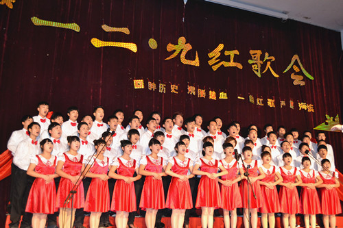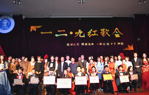 12月9日晚7:00,我院在实验楼报告厅隆重举办以“回眸历史、沸腾热血,一曲红歌、声震海滨”为主题的纪念“一二·九”运动77周年大型红歌合唱比赛。执行院长王大勇、党委书记路加栓、副院长贾怀义及各相关单位负责人、嘉宾评委与我院师生一同观看合唱比赛。