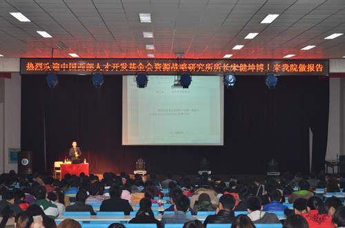 11月3日晚七点,中国西部人才开发基金会资源战略研究所所长宋健坤博士兼职教授聘任仪式暨专题报告会在我院实验楼报告厅举行。副院长周俞波、各相关单位负责人出席会议。我院经济管理系500余名同学参加会议。会议由周俞波副院长主持。