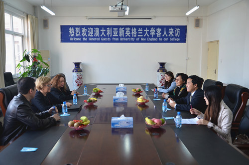 王大勇执行院长首先对代表团一行访问我院表示热烈的欢迎,并向客人们全面介绍了我院的专业设置、人才培养、办学特色等方面情况。新英格兰大学商学院院长对我院的热情接待表示衷心的感谢,并详细介绍了新英格兰大学目前国际合作项目的开展情况。随后,双方就教师培训、课程设置、学分互认等合作事宜进行了深入探讨。