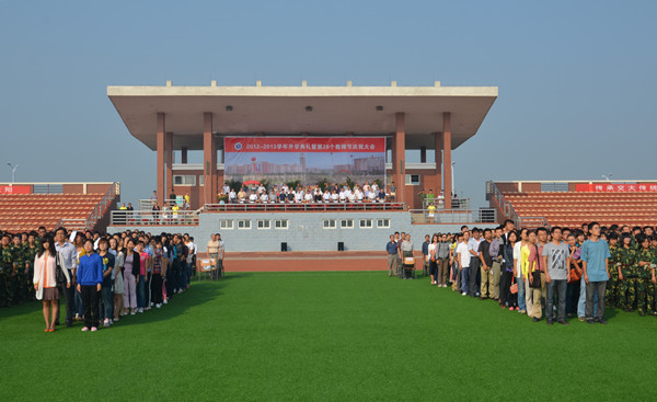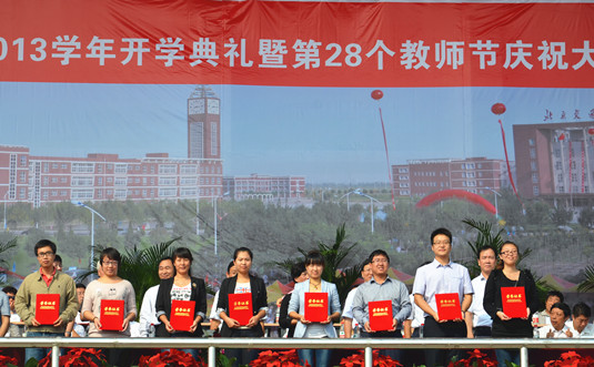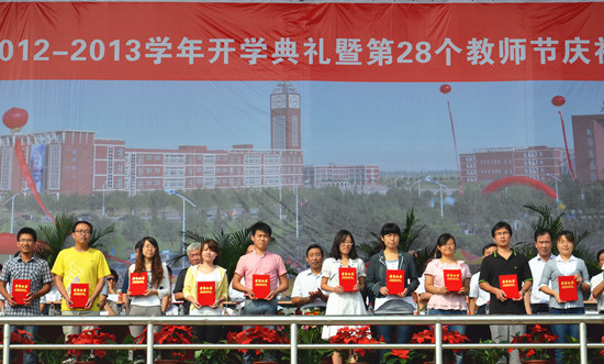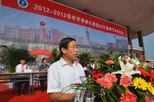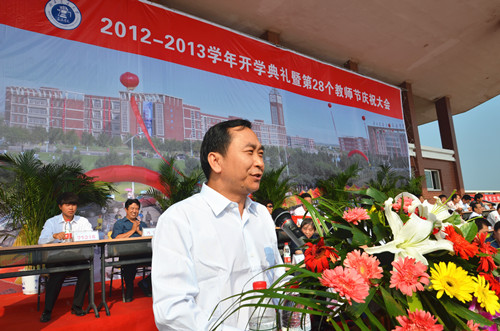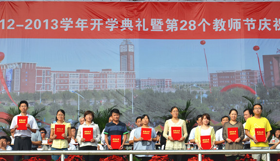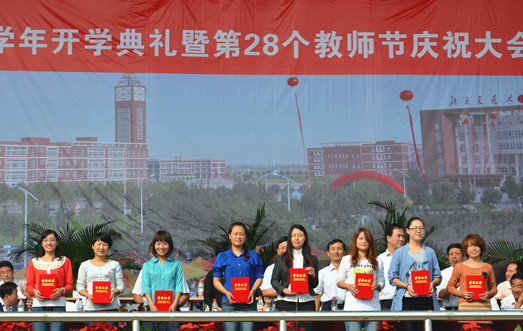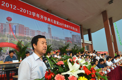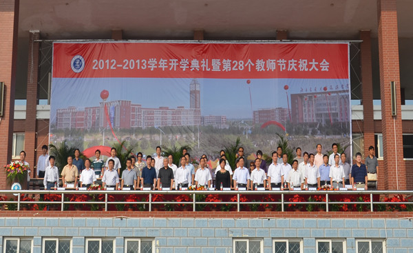 金秋九月,丹桂飘香。9月9日上午8:30,我院2012-2013学年开学典礼暨第28个教师节庆祝大会在学院操场隆重举行。北京交通大学党委副书记、我院院长高福廷,黄骅市委常委、副市长夏爱华,北京交通大学校长助理郑广天与各相关单位负责人以及投资方的代表等领导和嘉宾应邀出席大会并在主席台前排就坐。我院全体院领导、各系部处室负责人、责任教授以及全体师生员工参加大会。大会由我院执行院长王大勇主持。
