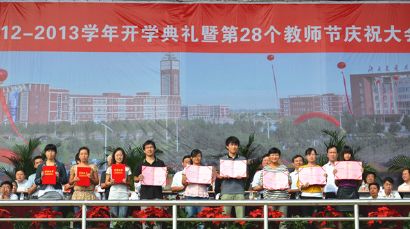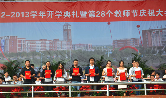 会上,我院党委书记路加栓宣读了“关于表彰2011-2012学年度优秀教职工的决定”和“第二届青年教师教学基本功大奖赛获奖名单”,主席台前排领导和嘉宾为获奖教师颁奖。