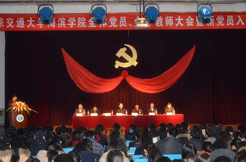 2012年3月22日,我院在实验楼报告厅召开全体党员、全体教师大会暨新党员入党宣誓仪式。北京交通大学党委副书记、海滨学院院长高福廷、执行院长王大勇、党委书记路加栓、副书记兼副院长张长铎、副院长贾怀义、吴子成、周俞波出席了大会。会议由副书记兼副院长张长铎主持。