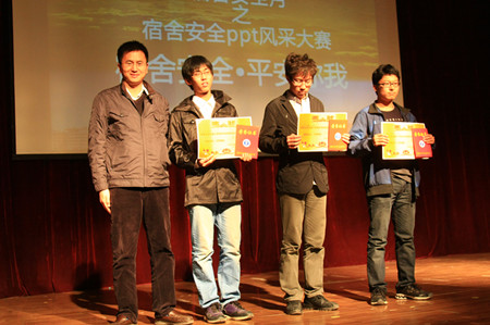 2011年11月9日是全国消防安全日,为加强我院学生对宿舍安全的重视力度,由我院自律委员会主办、团委社团部计算机协会承办的“北京交通大学海滨学院宿舍安全月之宿舍安全PPT风采大赛”的决赛评比活动在报告厅隆重举行。出席大赛的嘉宾及评委有执行院长王大勇、党委书记路加栓、副院长吴子成、学生处处长孙文博、公寓管理中心主任孙丽华以及学生处和计算机系的老师。
