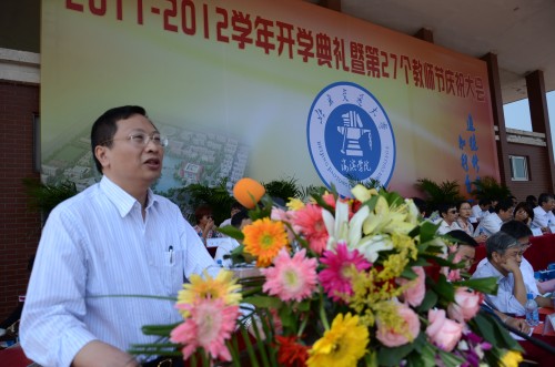 2011年9月9日上午,我院“2011-2012学年开学典礼暨第27个教师节庆祝大会”在学院体育场隆重举行。北京交通大学党委书记曹国永、党委副书记高福廷、学院董事长薛行远、黄骅市副市长郑增强及部分交大职能处室和院系负责人、校企合作方企业嘉宾50余人应邀出席了本次大会并在主席台就座。我院全体教职员工及5000余名在校学生及2885名2011级新同学参加大会。大会由我院执行院长王大勇主持。