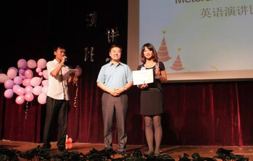王院长首先用风趣流利的英语为此次比赛致开幕词,他指出,举行英语演讲比赛,目的在于提升我院学生的英语水平,丰富我院学生的课余生活。英语演讲比赛意义重大,希望通过此次比赛能激发大家对英语学习的兴趣,争取培养出更多的英语人才。在王院长的激励下,通过激烈竞争脱颖而出的10位同学个个高水平发挥,他们机敏的应对每一次挑战,展现了他们过硬的英语功底、渊博的知识储备和良好的心理素质,激情演说令整场比赛精彩绝伦。