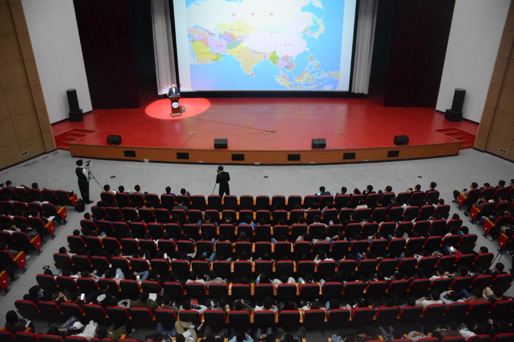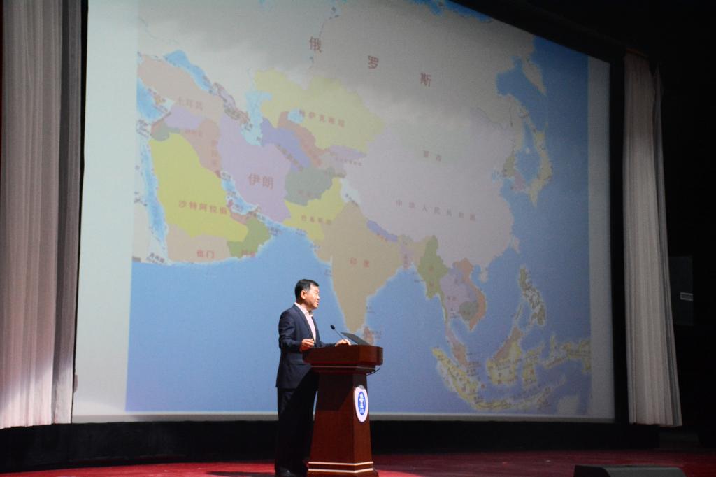 王化深院长从当下中国周边形势入手,从政治、经济、军事、文化四个方面对中国周边的国际环境、国家安全形势进行了分析。进而提出在世界多极化、文化多样化、信息多元化的复杂形势下, “一带一路”战略应运而生。他提到, “一带一路”是一个长期战略,是一个理念和倡议,同时也是一个政治互信、经济融合、文化包容的中国方案。最后,他鞭策海滨学子要牢记自己的责任与使命,把自身的成长目标和祖国的建设需要结合起来,为中国梦的实现添砖加瓦。