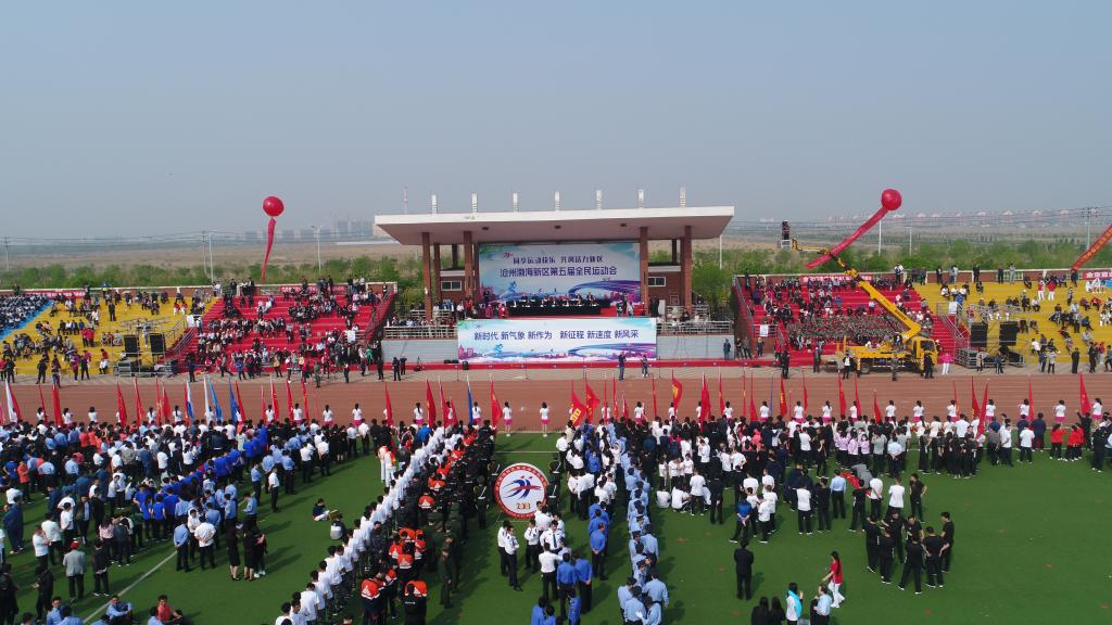 4月26日上午,渤海新区第五届全民运动会在太阳官网隆重开幕。太阳官网王化深院长受邀参加了开幕式并在主席台就座。来自新区各界群众2000余人共同观看了开幕式盛况。开幕仪式由渤海新区党工委委员、黄骅市委书记朱春燕主持。