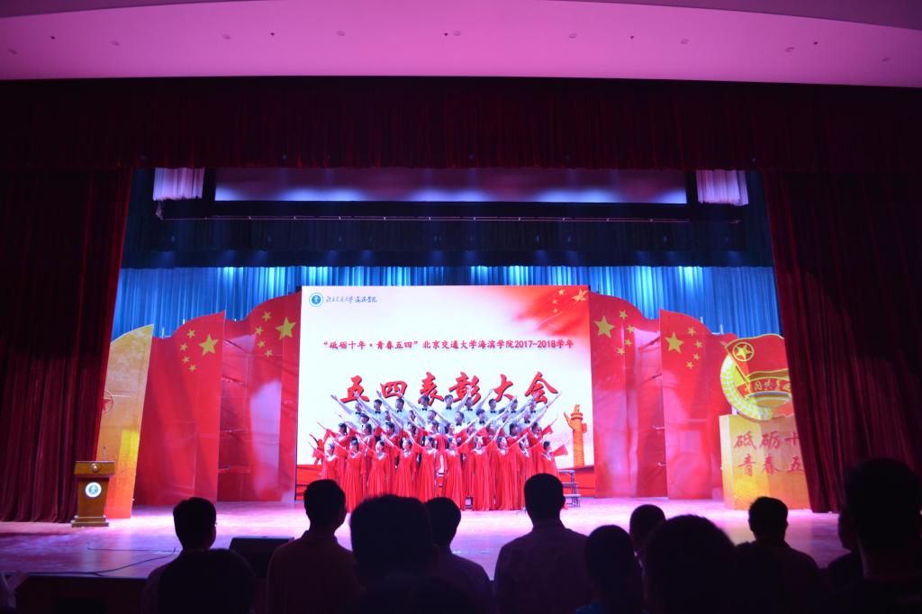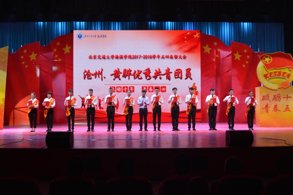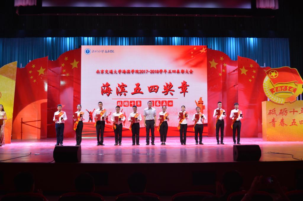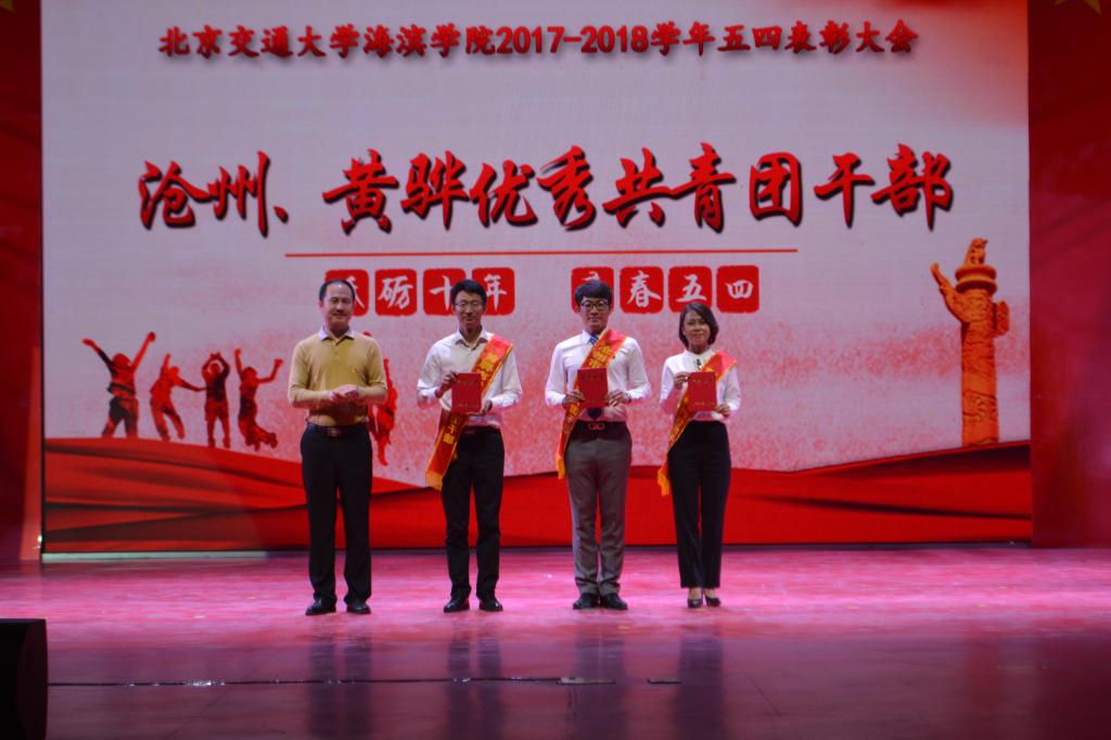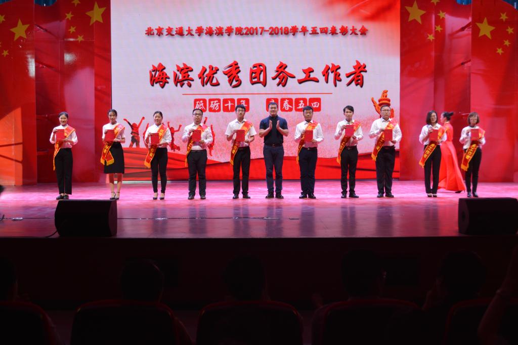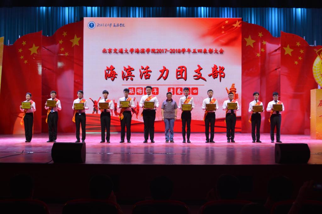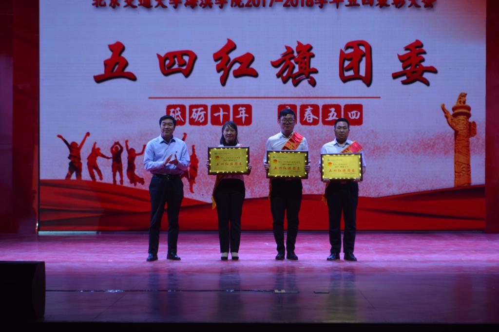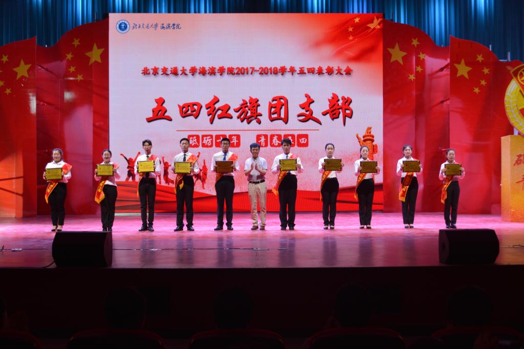 党委书记魏旺强为获得2017-2018学年北京交通大学海滨学院“五四红旗团委”的获奖集体颁奖