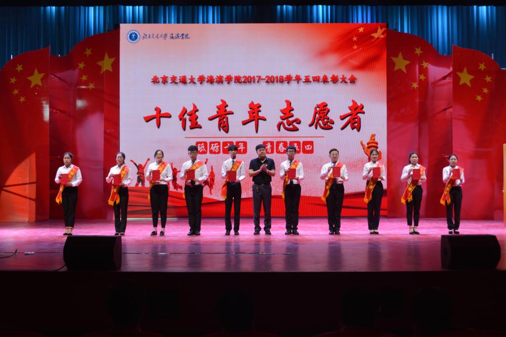 图书馆(档案馆)馆长周鹏为获得2017-2018学年北京交通大学海滨学院“十佳青年志愿者”代表颁奖