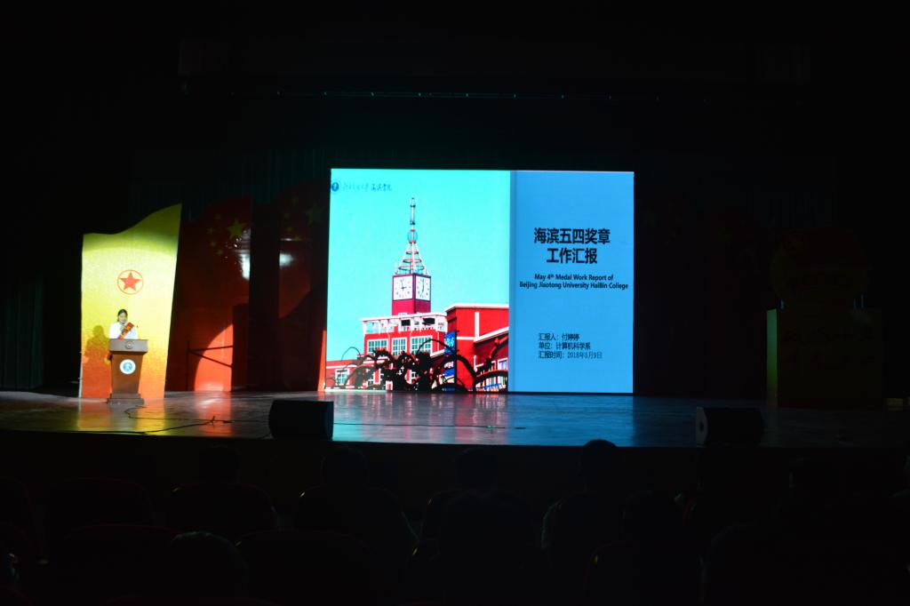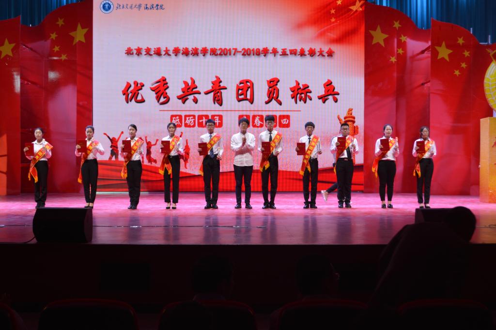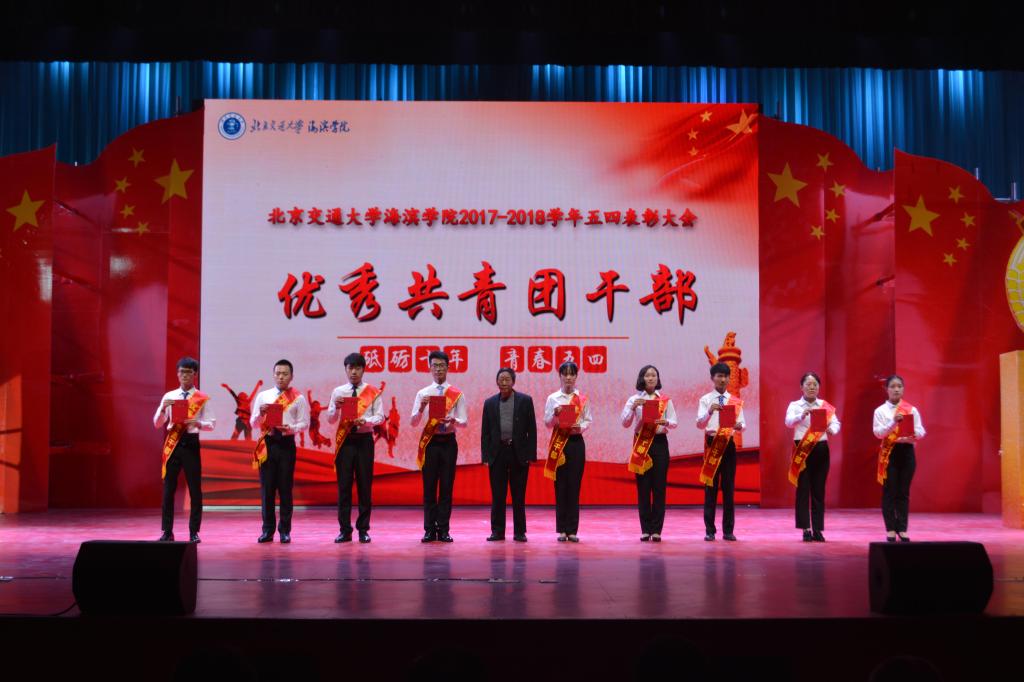 学生处处长、校团委书记黄璐璐为获得2017-2018学年北京交通大学海滨学院“优秀共青团员”代表颁奖