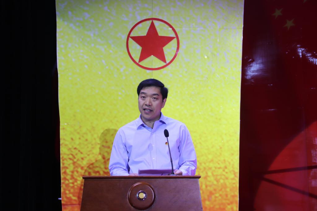 党委书记魏旺强发表讲话,魏书记首先向长期关心青年成长并致力于青年事业的同志们表示感谢。他强调广大青年们应居安思危,众志成城,勇于奋斗,并借此机会对全校同学提出三点希冀:一是作为青年要不忘初心,牢记使命,做新时代的筑梦人;二是要当新时代追梦人,知行合一,脚踏实地,提升综合素质;三是要胸怀祖国,砥砺前行,努力成为新时代的圆梦人。