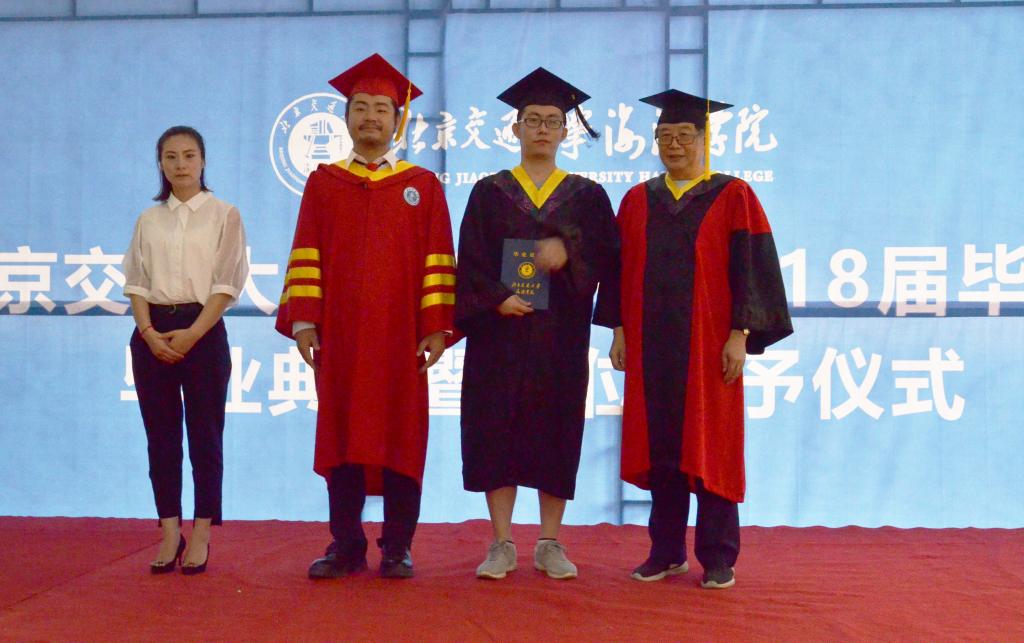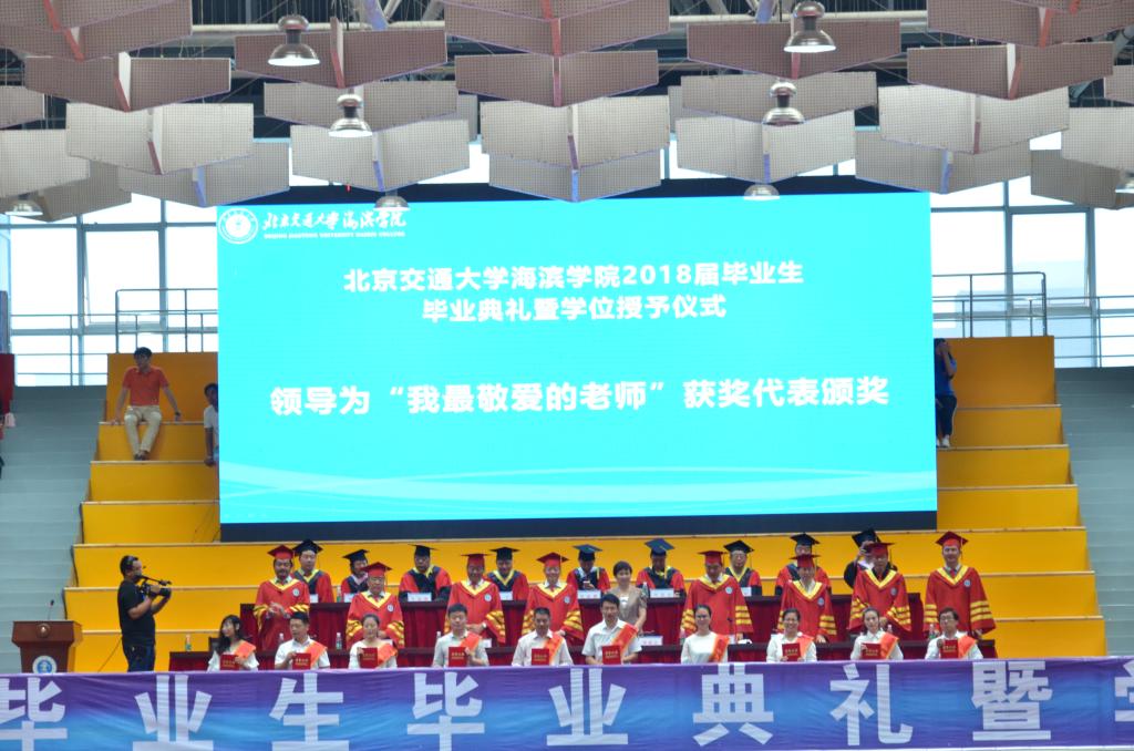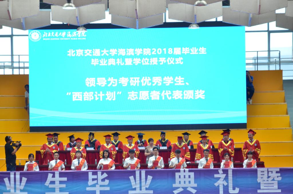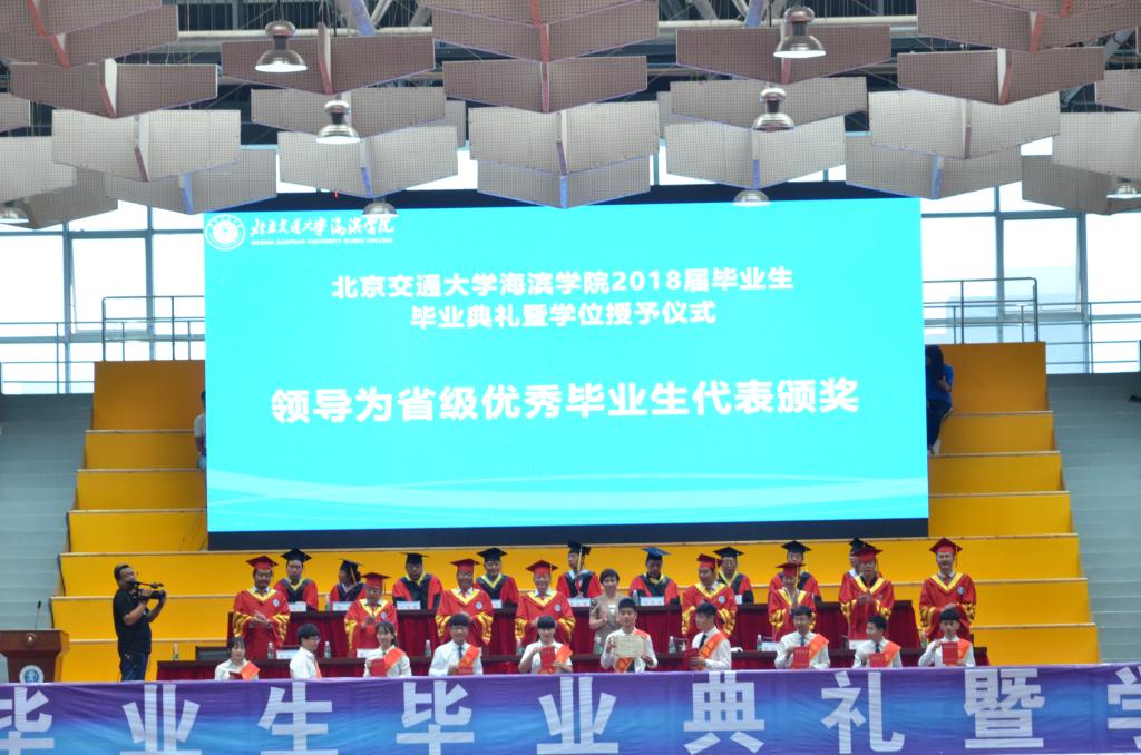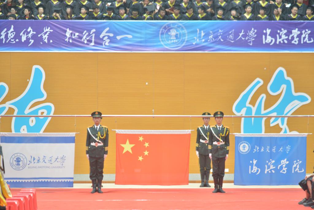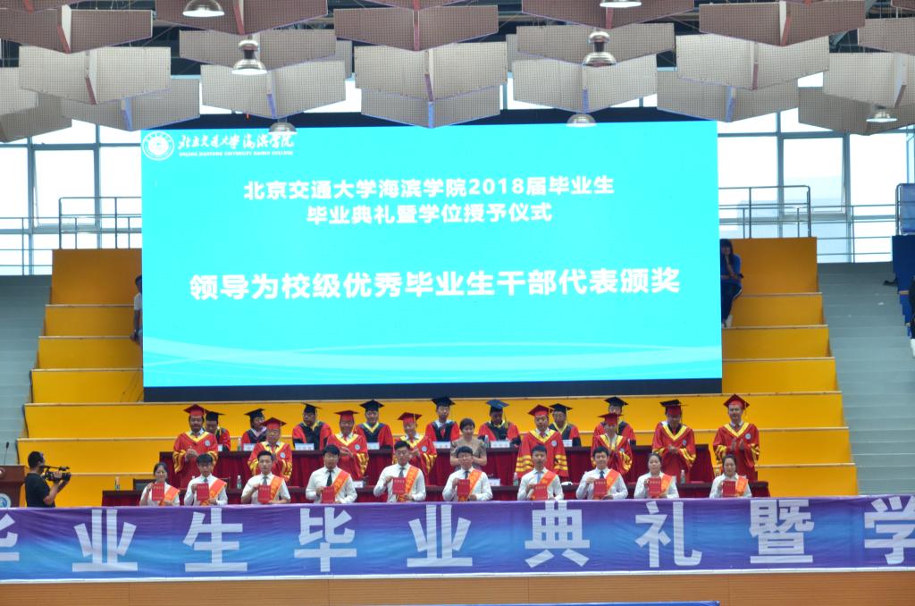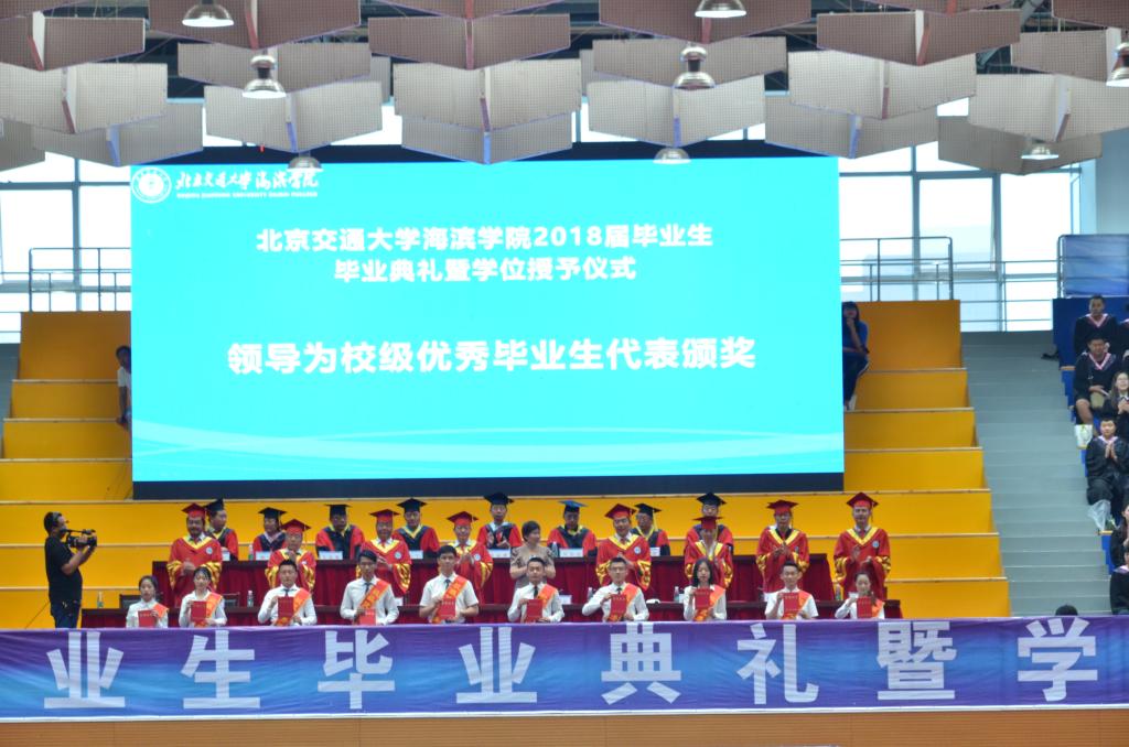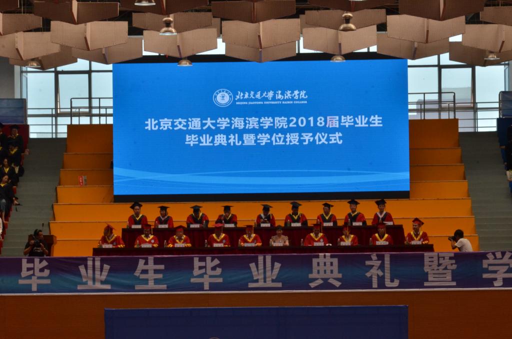 6月22日上午8时,为了见证2018届毕业生从母校启航,掀起人生新篇章,北京交通大学海滨学院2018届毕业生毕业典礼暨学位授予仪式在海滨体育馆盛大召开。北京交通大学党委副书记、纪委书记郭海,黄骅市副市长张桂云,院长王化深,副院长、党委副书记张长铎,副院长张乐乐,副院长、祥兴集团副总裁薛君南,副院长徐爱国,院长助理任福义出席了本次典礼,各系主任,相关职能处室负责人,教师代表,2018届全体毕业生参加了本次典礼。本次毕业典礼由党委书记魏旺强主持。