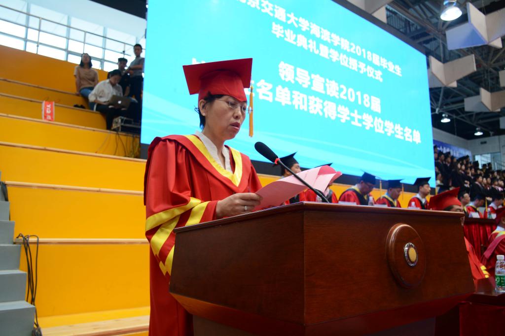 张乐乐副院长宣读2018届毕业生名单和获得学士学位学生名单。
