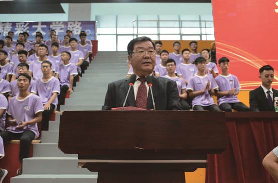 北京交通大学副校长关忠良致辞。他代表北交大母校对2018级新生的到来表示热烈欢迎,同时向全体海滨教职工致以节日的问候。关校长要求同学们做好学习这个本职工作,通过踏实求学、实践中学、勤思促学来求得真学问、练就真本事。